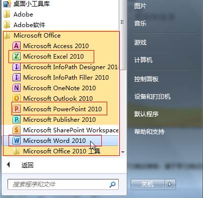 10、在开始菜单——所有程序——Microsoft office ——下面就是全部的Microsoft office2010。